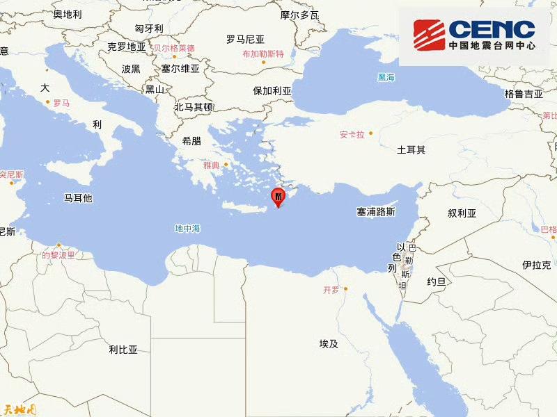希腊克里特岛附近海域发生6.0级地震 震源深度70公里